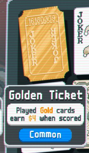 Retrigger all played face cards | Play a total of 300 Face Cards | You will unlock it through regular gameplay. To unlock it faster, you can follow the same tips as for Golden Ticket (see above). |